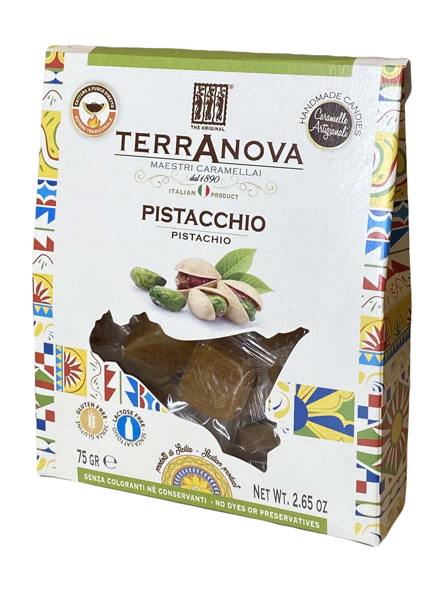 | Ingredienti | Zucchero, Sciroppo di glucosio, Spirulina, Aromi naturali (ricavati dalla macinazione, frammentazione e distillazione del pistacchio). Può contenere tracce di SESAMO. |